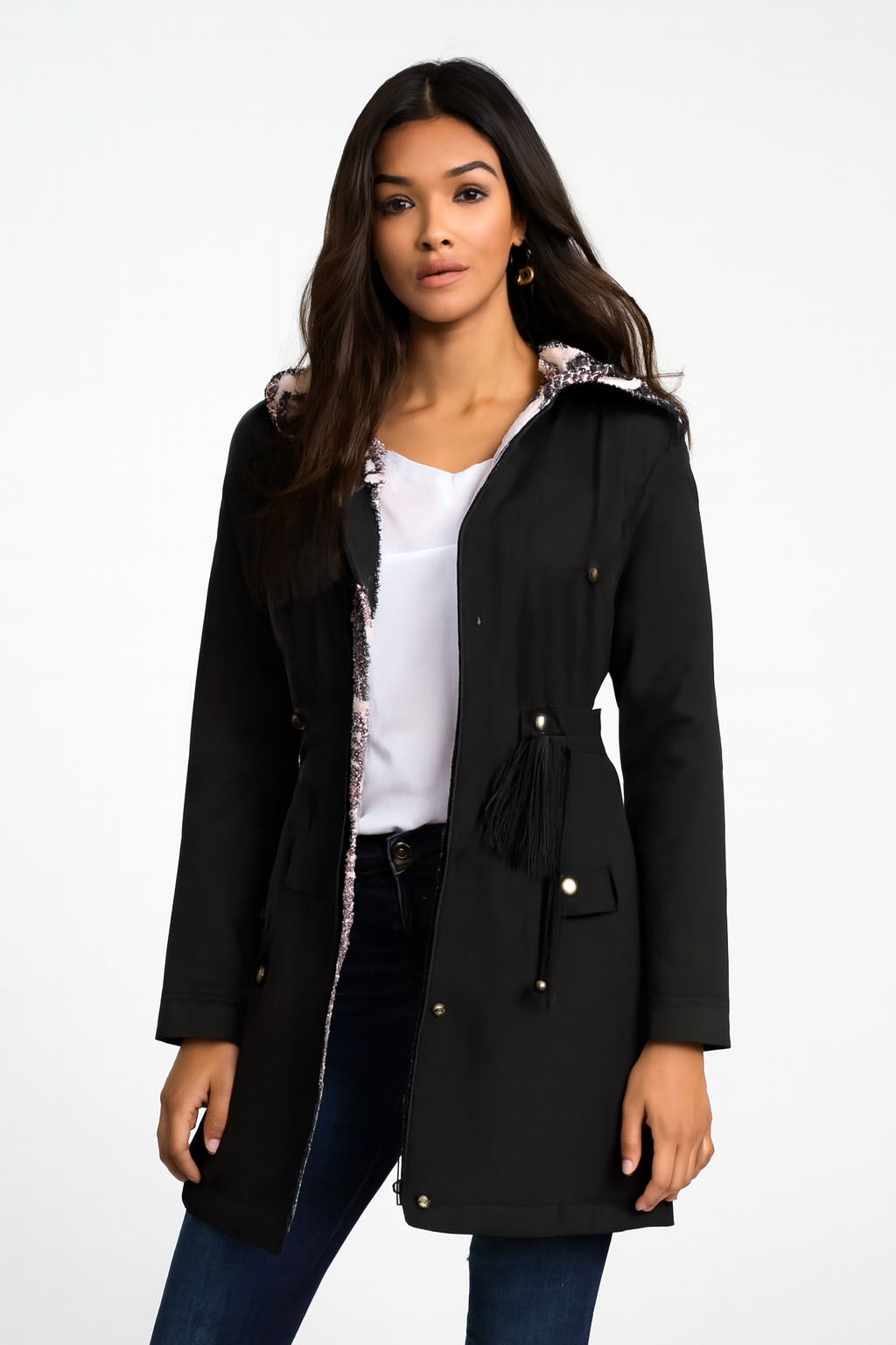 Su diseño resistente al agua y su forro interior a cuadros aportan un toque clásico y elegante, perfecto para los días lluviosos. Ofrece comodidad, durabilidad y un ajuste favorecedor en cualquier ocasión.