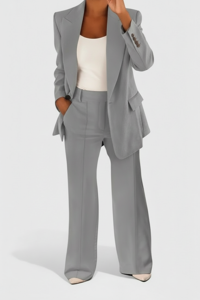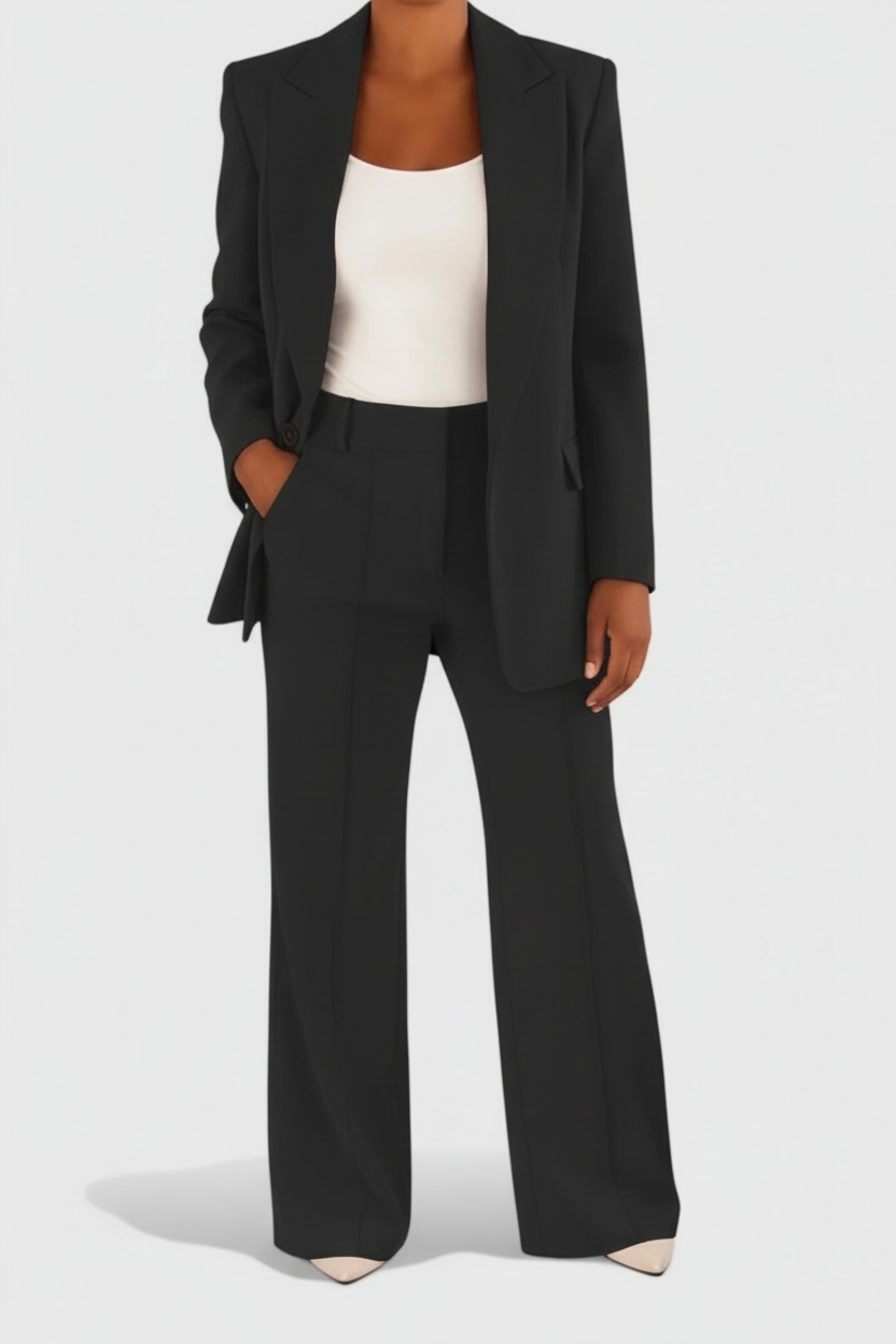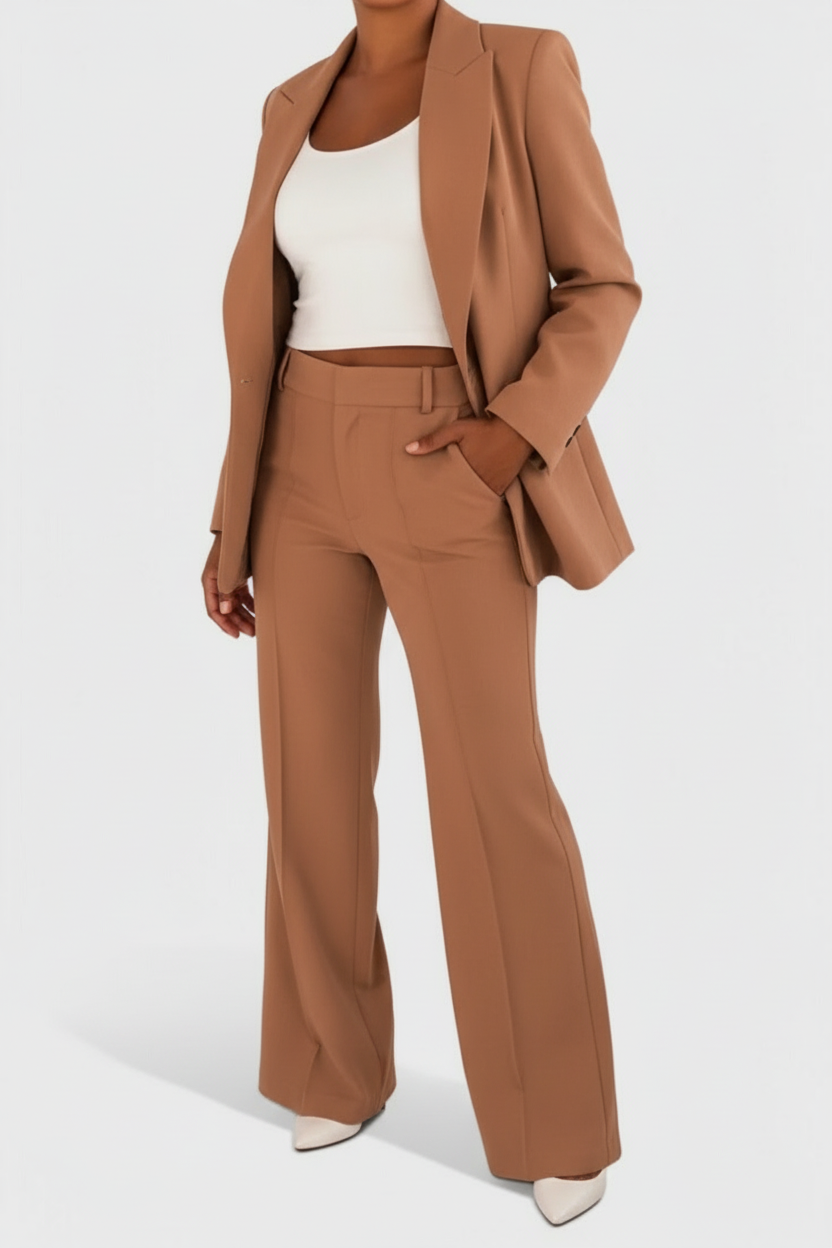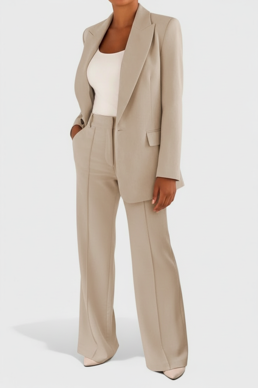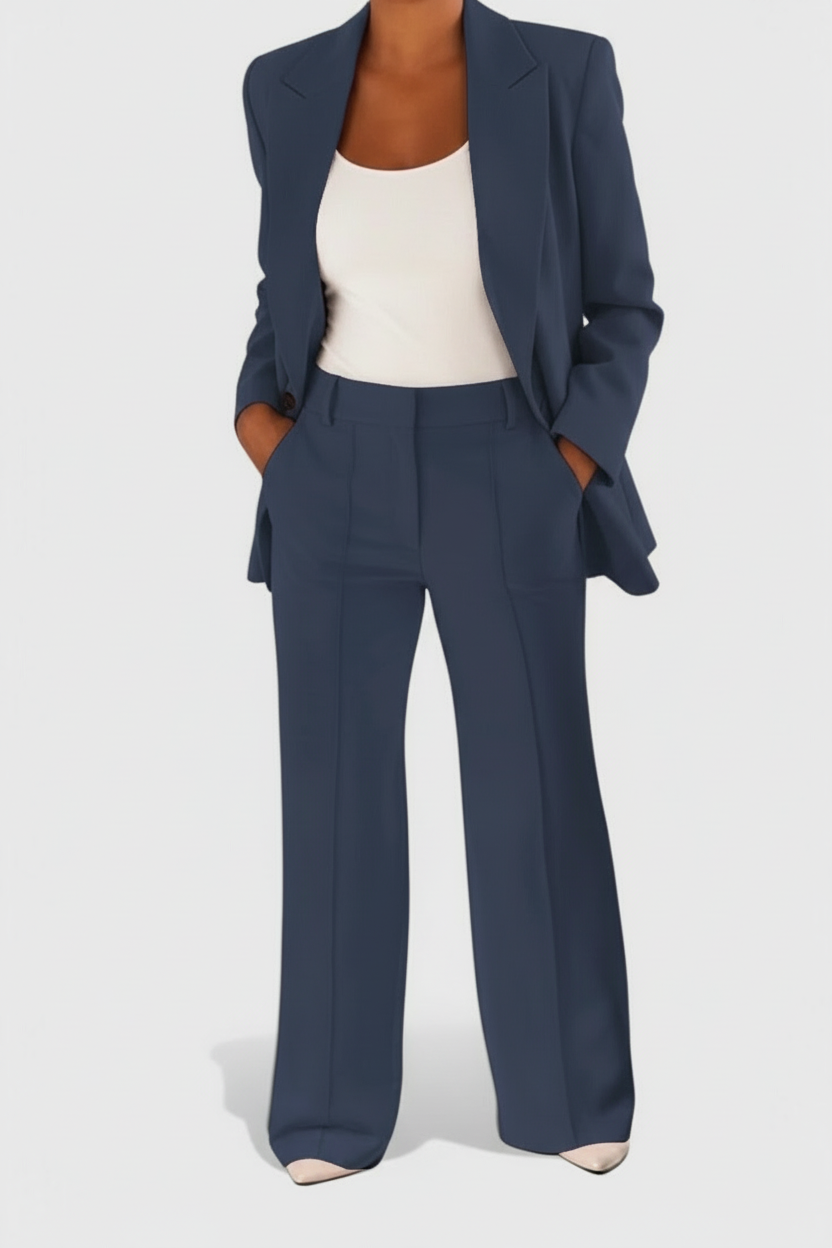 Transita sin esfuerzo de la oficina al tiempo libre con el Conjunto Kaia de 2 Piezas. Confeccionado con una tela ultra suave y transpirable, este dúo de chaqueta y pantalón combina una estructura ajustada con una elegancia relajada. Perfecto para la mujer moderna que valora la comodidad sin comprometer el estilo.