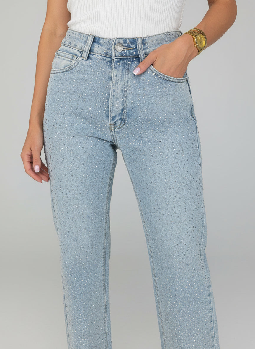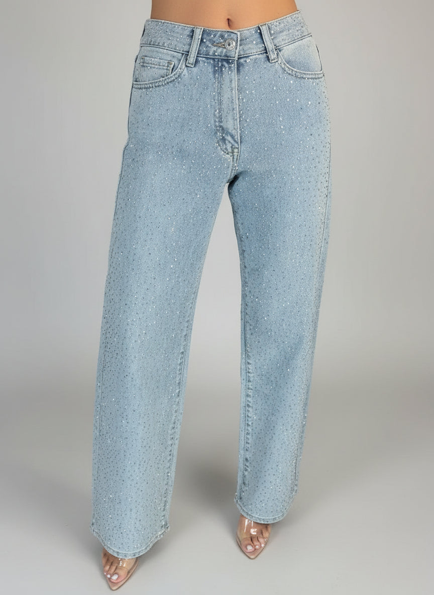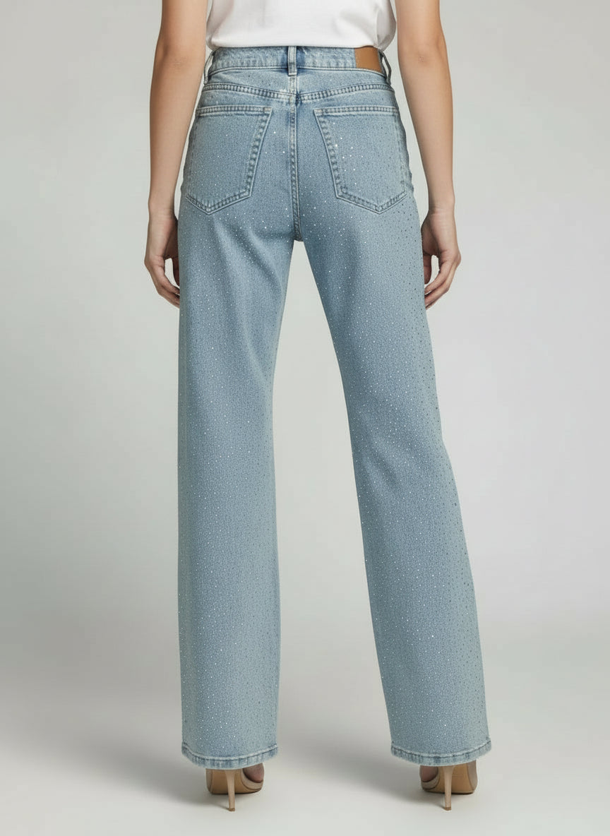 Los Jeans Diamants Straight combinan la esencia del denim clásico con un toque sofisticado. Su tiro alto realza la cintura y define la silueta, mientras que los brillantes detalles de diamanté en la parte frontal y trasera aportan un acabado glamuroso y moderno. Su corte recto garantiza comodidad y versatilidad, convirtiéndolos en un imprescindible tanto para looks casuales como para outfits más elegantes.