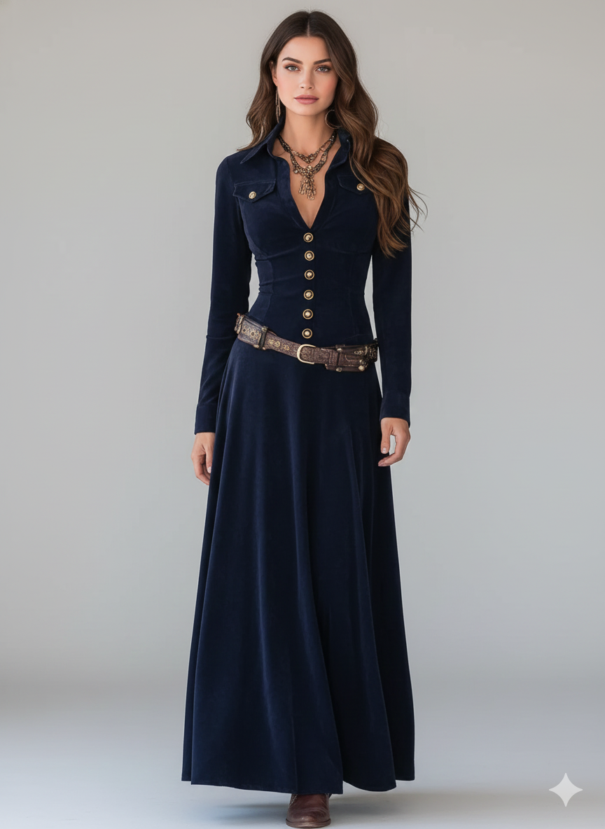 Mila — el vestido largo de antelina que combina elegancia, modernidad y feminidad.